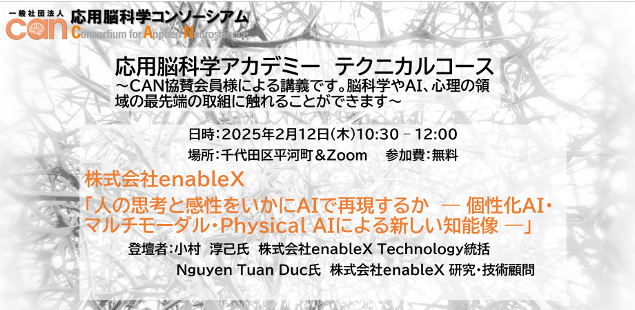 2/12開催 株式会社enableX「人の思考と感性をいかにAIで再現するか ― 個性化AI・マルチモーダル・Physical AIによる新しい知能像 ―」
